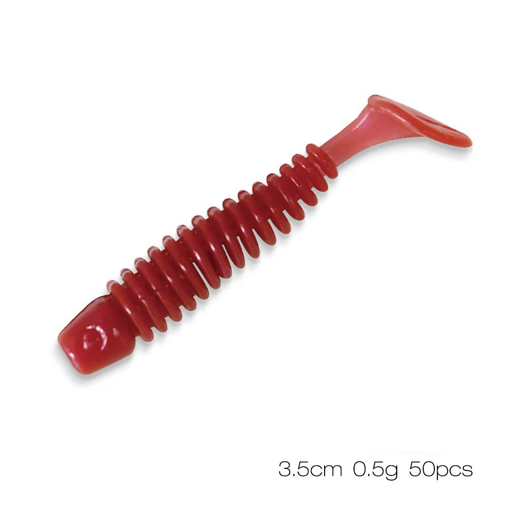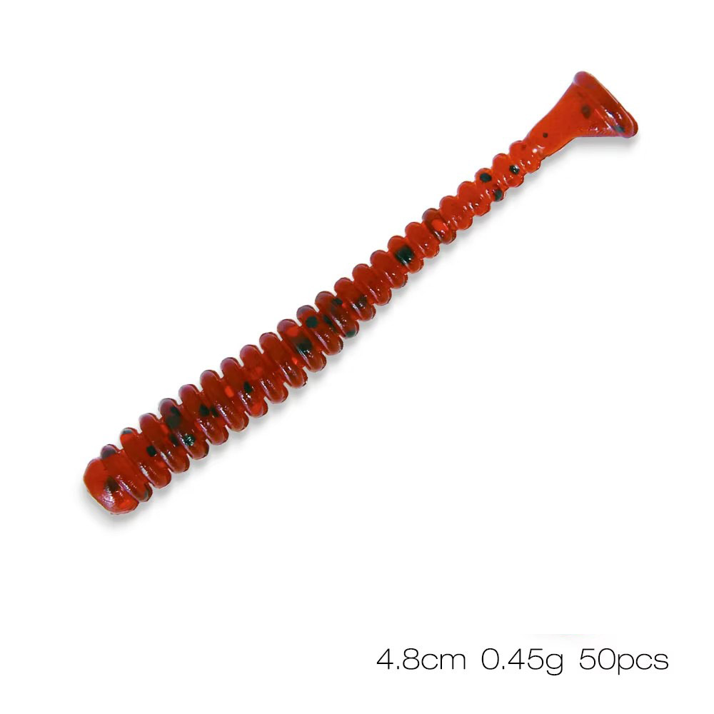 S22-Softbaits Mini Soft Worm Wobblers Jerkbaits with T-tail 50pcs/box 0.45g 48mm Mirco Bass Worm Lure Rig Swimbait Pesca